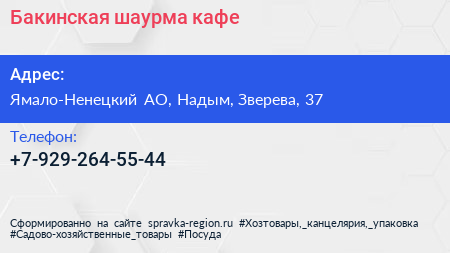 Бакинская шаурма, кафе по адресу Ямало-Ненецкий АО, Надым, Зверева, 37 в дальнейшем Организация, размещена в следующих категориях: