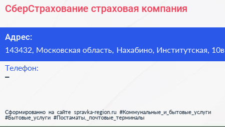 СберСтрахование, страховая компания по адресу 143432, Московская область, Нахабино, Институтская, 10в в дальнейшем Организация, размещена в следующих категориях: