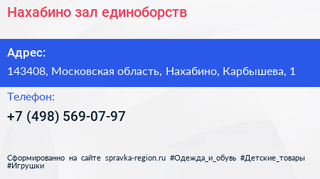 Нахабино, зал единоборств по адресу 143408, Московская область, Нахабино, Карбышева, 1 в дальнейшем Организация, размещена в следующих категориях: