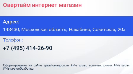 Овертайм, интернет-магазин по адресу 143430, Московская область, Нахабино, Советская, 20а в дальнейшем Организация, размещена в следующих категориях: