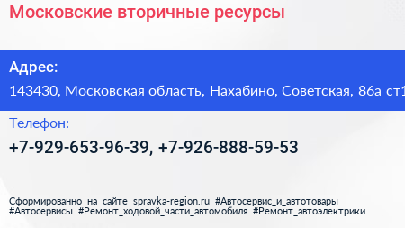 Московские вторичные ресурсы по адресу 143430, Московская область, Нахабино, Советская, 86а ст1 в дальнейшем Организация, размещена в следующих категориях: