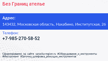Без Границ, ателье по адресу 143432, Московская область, Нахабино, Институтская, 26 в дальнейшем Организация, размещена в следующих категориях:
