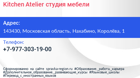 Kitchen Atelier, студия мебели по адресу 143430, Московская область, Нахабино, Королёва, 1 в дальнейшем Организация, размещена в следующих категориях: