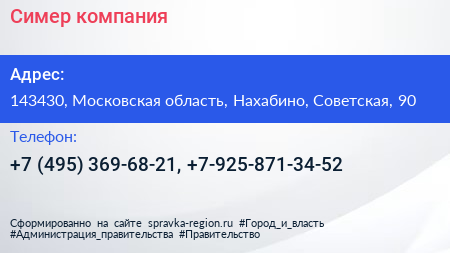 Симер, компания по адресу 143430, Московская область, Нахабино, Советская, 90 в дальнейшем Организация, размещена в следующих категориях: