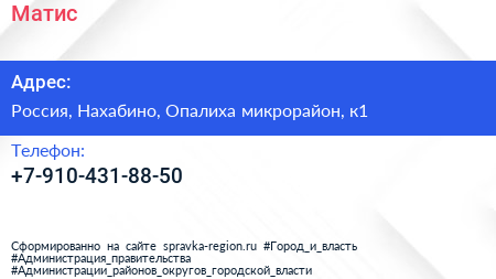 Матис по адресу 3, Алексеевская улица, Жилой комплекс «Опалиха Парк», Опалиха, Красногорск, городской округ Красногорск, Московская область, Центральный федеральный округ, 143405, Россия в дальнейшем Организация, размещена в следующих категориях: