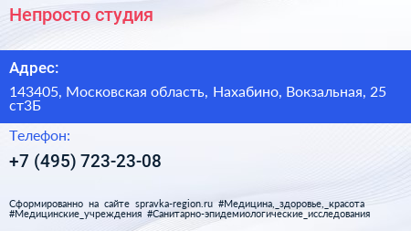 Непросто, студия по адресу 143405, Московская область, Нахабино, Вокзальная, 25 ст3Б в дальнейшем Организация, размещена в следующих категориях: