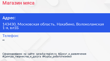 Магазин мяса по адресу 143430, Московская область, Нахабино, Волоколамская 1-я, вл1Б в дальнейшем Организация, размещена в следующих категориях: