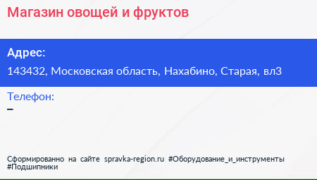 Магазин овощей и фруктов по адресу 143432, Московская область, Нахабино, Старая, вл3 в дальнейшем Организация, размещена в следующих категориях: