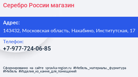 Серебро России, магазин по адресу 143432, Московская область, Нахабино, Институтская, 17 в дальнейшем Организация, размещена в следующих категориях: