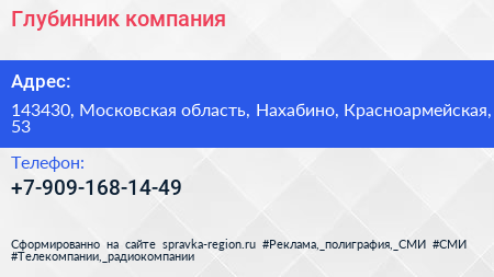 Глубинник, компания по адресу 143430, Московская область, Нахабино, Красноармейская, 53 в дальнейшем Организация, размещена в следующих категориях: