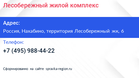 Лесобережный, жилой комплекс по адресу 6, улица Полковника Глазунова, Жилой комплекс «Лесобережный», Николо-Урюпино, городской округ Красногорск, Московская область, Центральный федеральный округ, 143421, Россия в дальнейшем Организация, размещена в следующих категориях: