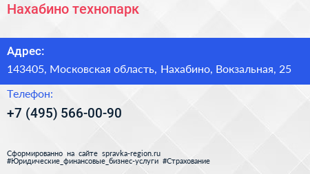 Нахабино, технопарк по адресу 143405, Московская область, Нахабино, Вокзальная, 25 в дальнейшем Организация, размещена в следующих категориях: