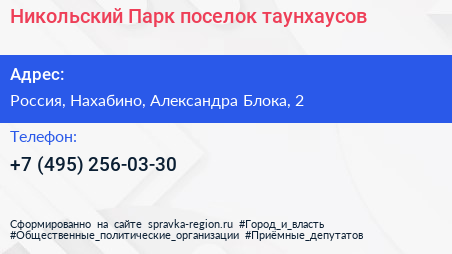 Никольский Парк, поселок таунхаусов по адресу 2, улица Александра Блока, Жилой комплекс "Никольский парк", Опалиха, Красногорск, городской округ Красногорск, Московская область, Центральный федеральный округ, 143443, Россия в дальнейшем Организация, размещена в следующих категориях: