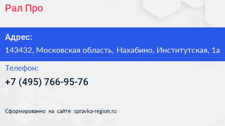 Рал-Про по адресу 143432, Московская область, Нахабино, Институтская, 1а в дальнейшем Организация, размещена в следующих категориях: