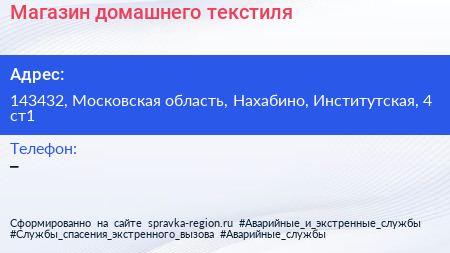 Магазин домашнего текстиля по адресу 143432, Московская область, Нахабино, Институтская, 4 ст1 в дальнейшем Организация, размещена в следующих категориях: