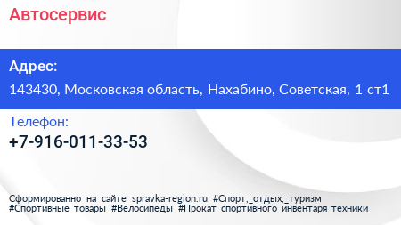 Автосервис по адресу 143430, Московская область, Нахабино, Советская, 1 ст1 в дальнейшем Организация, размещена в следующих категориях: