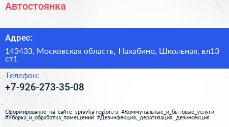 Автостоянка по адресу 143433, Московская область, Нахабино, Школьная, вл13 ст1 в дальнейшем Организация, размещена в следующих категориях: