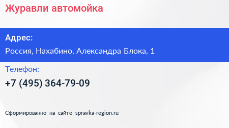 Журавли, автомойка по адресу 1, улица Александра Блока, Жилой комплекс "Никольский парк", Опалиха, Красногорск, городской округ Красногорск, Московская область, Центральный федеральный округ, 143443, Россия в дальнейшем Организация, размещена в следующих категориях: