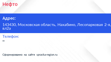 Нефто по адресу 143430, Московская область, Нахабино, Лесопарковая 2-я, вл2а в дальнейшем Организация, размещена в следующих категориях:
