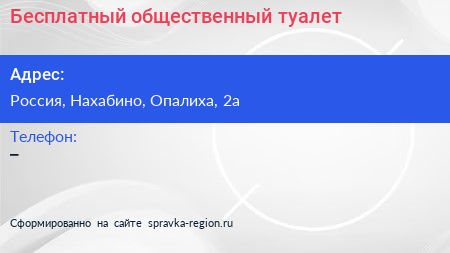 Бесплатный общественный туалет по адресу Опалиха, улица Опалиха, Изумрудные холмы, Опалиха, Красногорск, городской округ Красногорск, Московская область, Центральный федеральный округ, 143405, Россия в дальнейшем Организация, размещена в следующих категориях: