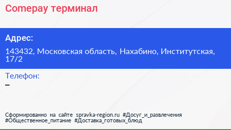 Comepay, терминал по адресу 143432, Московская область, Нахабино, Институтская, 17/2 в дальнейшем Организация, размещена в следующих категориях: