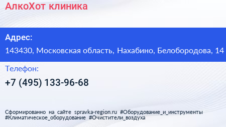 АлкоХот, клиника по адресу 143430, Московская область, Нахабино, Белобородова, 14 в дальнейшем Организация, размещена в следующих категориях: