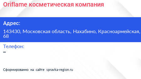 Oriflame, косметическая компания по адресу 143430, Московская область, Нахабино, Красноармейская, 68 в дальнейшем Организация, размещена в следующих категориях:
