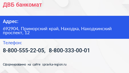 ДВБ, банкомат по адресу 692904, Приморский край, Находка, Находкинский проспект, 12 в дальнейшем Организация, размещена в следующих категориях: