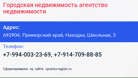 Городская недвижимость, агентство недвижимости по адресу 692904, Приморский край, Находка, Школьная, 3 в дальнейшем Организация, размещена в следующих категориях: