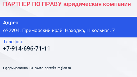 ПАРТНЕР ПО ПРАВУ, юридическая компания по адресу 692904, Приморский край, Находка, Школьная, 7 в дальнейшем Организация, размещена в следующих категориях: