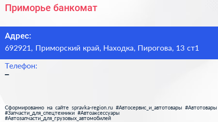 Приморье, банкомат по адресу 692921, Приморский край, Находка, Пирогова, 13 ст1 в дальнейшем Организация, размещена в следующих категориях: