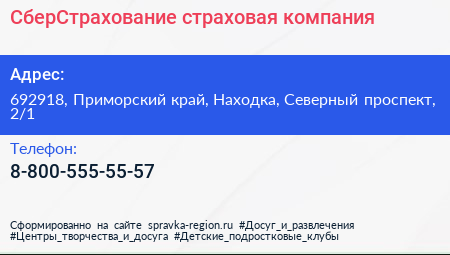 СберСтрахование, страховая компания по адресу 692918, Приморский край, Находка, Северный проспект, 2/1 в дальнейшем Организация, размещена в следующих категориях: