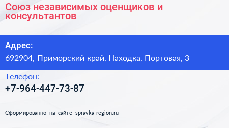 Союз независимых оценщиков и консультантов по адресу 692904, Приморский край, Находка, Портовая, 3 в дальнейшем Организация, размещена в следующих категориях: