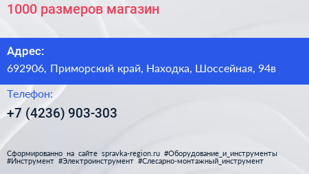 1000 размеров, магазин по адресу 692906, Приморский край, Находка, Шоссейная, 94в в дальнейшем Организация, размещена в следующих категориях: