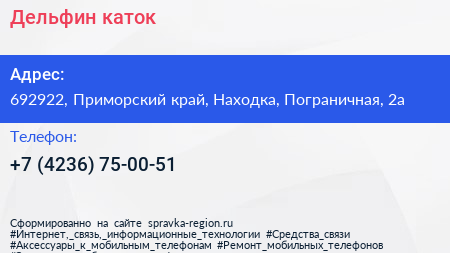 Дельфин, каток по адресу 692922, Приморский край, Находка, Пограничная, 2а в дальнейшем Организация, размещена в следующих категориях: