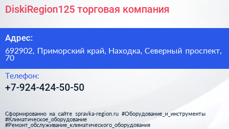 DiskiRegion125, торговая компания по адресу 692902, Приморский край, Находка, Северный проспект, 70 в дальнейшем Организация, размещена в следующих категориях: