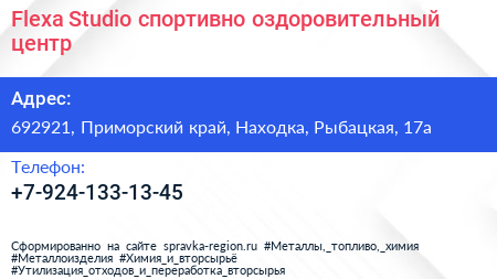 Flexa Studio, спортивно-оздоровительный центр по адресу 692921, Приморский край, Находка, Рыбацкая, 17а в дальнейшем Организация, размещена в следующих категориях:
