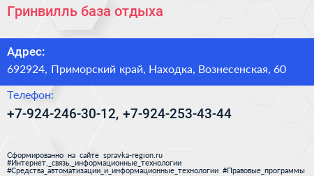Гринвилль, база отдыха по адресу 692924, Приморский край, Находка, Вознесенская, 60 в дальнейшем Организация, размещена в следующих категориях: