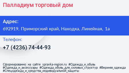 Палладиум, торговый дом по адресу 692919, Приморский край, Находка, Линейная, 1а в дальнейшем Организация, размещена в следующих категориях: