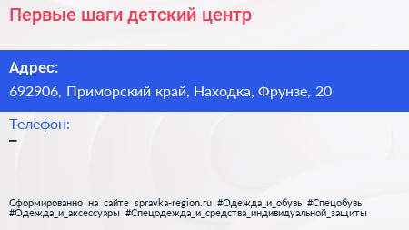 Первые шаги, детский центр по адресу 692906, Приморский край, Находка, Фрунзе, 20 в дальнейшем Организация, размещена в следующих категориях: