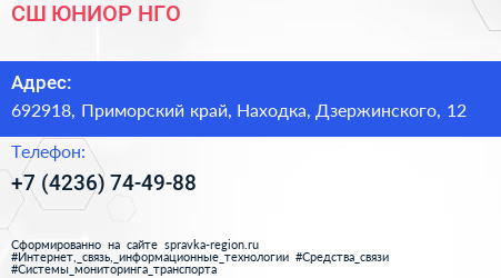 СШ ЮНИОР НГО по адресу 692918, Приморский край, Находка, Дзержинского, 12 в дальнейшем Организация, размещена в следующих категориях:
