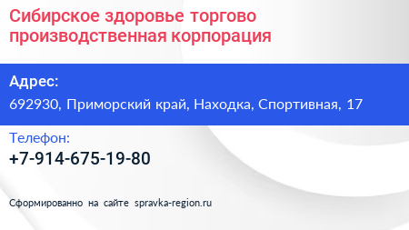 Сибирское здоровье, торгово-производственная корпорация по адресу 692930, Приморский край, Находка, Спортивная, 17 в дальнейшем Организация, размещена в следующих категориях: