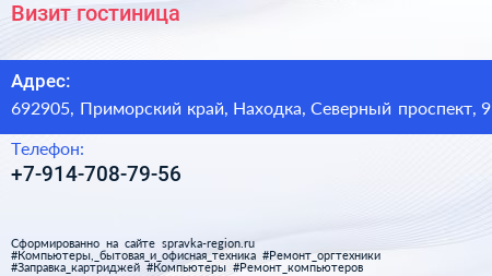 Визит, гостиница по адресу 692905, Приморский край, Находка, Северный проспект, 9 в дальнейшем Организация, размещена в следующих категориях: