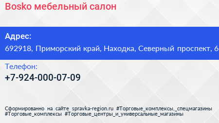 Bosko, мебельный салон по адресу 692918, Приморский край, Находка, Северный проспект, 6 в дальнейшем Организация, размещена в следующих категориях: