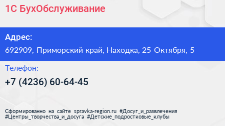1С:БухОбслуживание по адресу 692909, Приморский край, Находка, 25 Октября, 5 в дальнейшем Организация, размещена в следующих категориях: