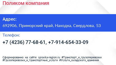Поликом, компания по адресу 692906, Приморский край, Находка, Свердлова, 53 в дальнейшем Организация, размещена в следующих категориях: