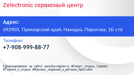 Zelectronic, сервисный центр по адресу 692903, Приморский край, Находка, Пирогова, 1Б ст6 в дальнейшем Организация, размещена в следующих категориях: