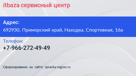 itbaza, сервисный центр по адресу 692930, Приморский край, Находка, Спортивная, 16а в дальнейшем Организация, размещена в следующих категориях: