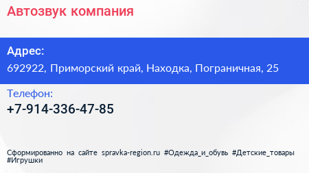 Автозвук, компания по адресу 692922, Приморский край, Находка, Пограничная, 25 в дальнейшем Организация, размещена в следующих категориях: