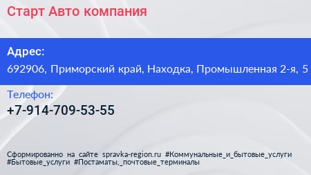Старт-Авто, компания по адресу 692906, Приморский край, Находка, Промышленная 2-я, 5 в дальнейшем Организация, размещена в следующих категориях: